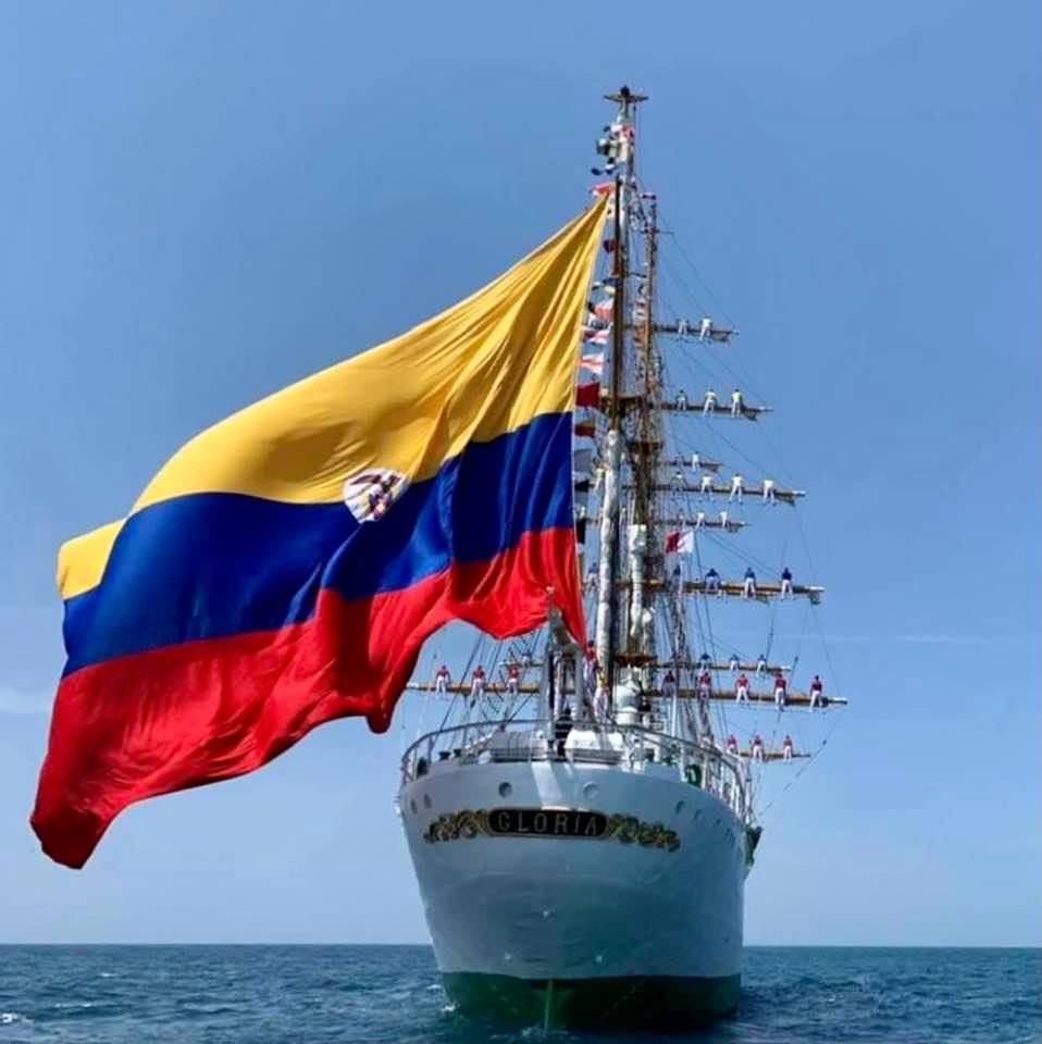 Les navires-écoles des marines sud-américaines arborent encore les grands pavillons que portaient autrefois les navires de guerre de l'époque de la marine à voile. Et c'est beau ! Ici la Gloria (1967), de la marine colombienne.