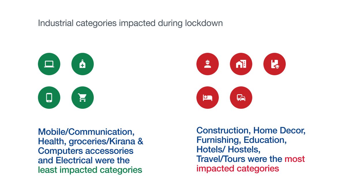 However drop was comparatively lower for grocery(-9%), mobile(-12%), health(-10%) and agriculture(-9%).