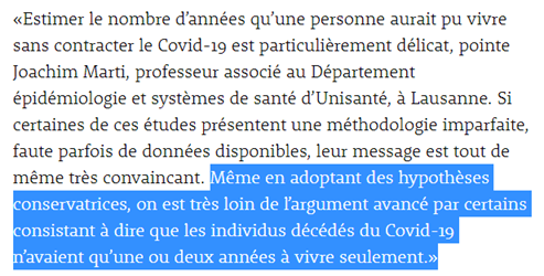 En enfin la question qui se pose à chaque fois (sauf pour lui) c’est « combien de temps auraient survécu ces personnes » et sur ça on a des études, en moyenne 10 ans de plus. letemps.ch/sciences/milli…