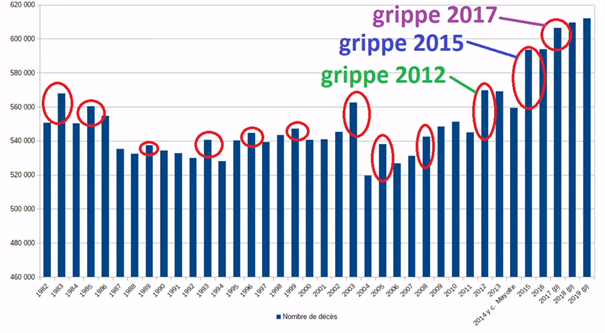 Il faut se souvenir que la mortalité de la grippe n’est pas que dû à la population, mais aux souches qui circulent. Parfois on a de la chance, les vaccins fonctionnent, parfois non.