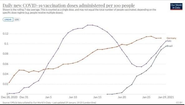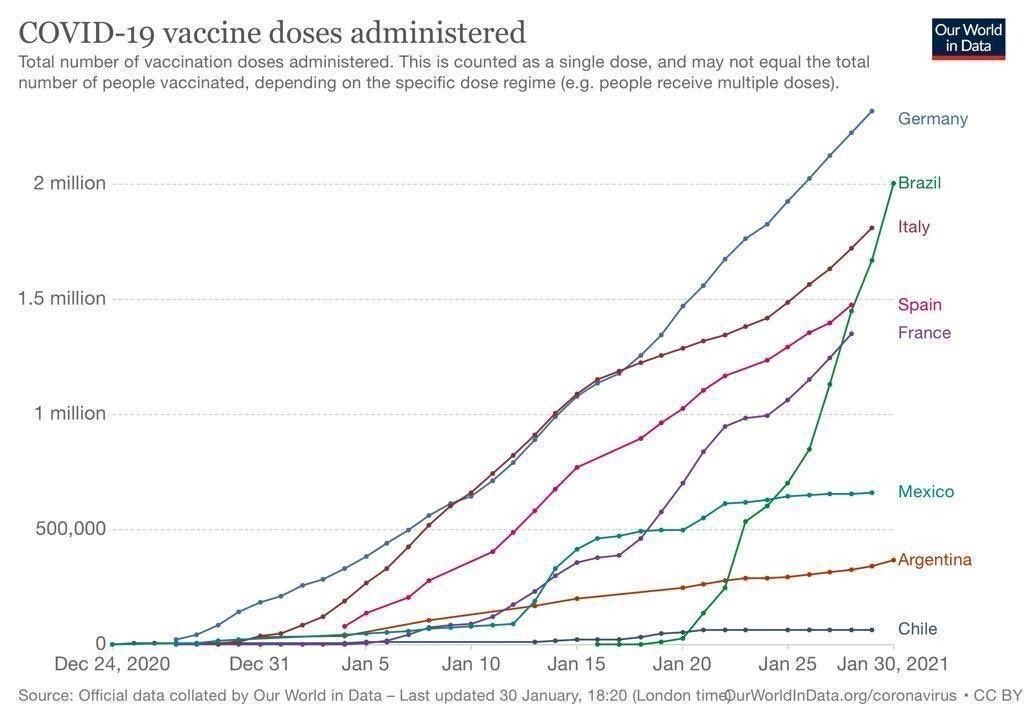 O que importa é quantas pessoas por doses por população foram entregues, e nisso não estamos bem em comparação com outros países.