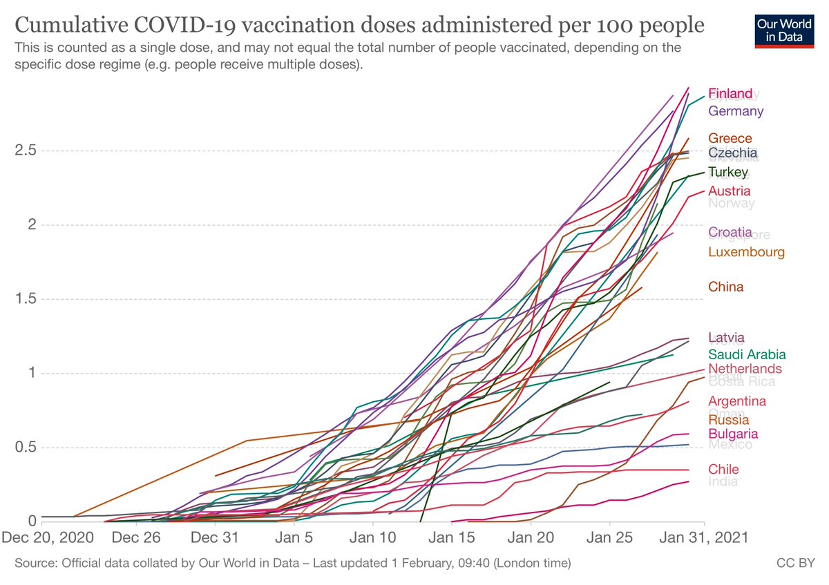 Tentem achar o Brasil dentre os 50 que mais vacinaram por habitante.