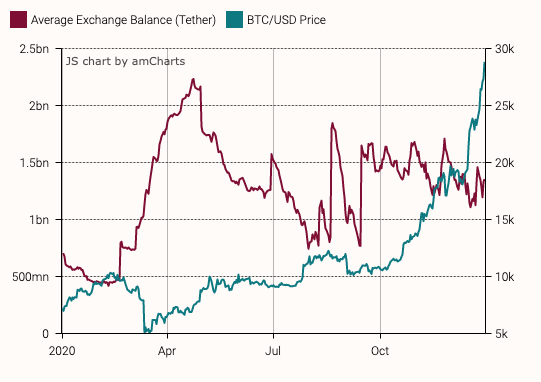 By the end of the year, Glassnode data shows that the amount of Tether sitting on exchanges had doubled versus the start of the year. 3/7