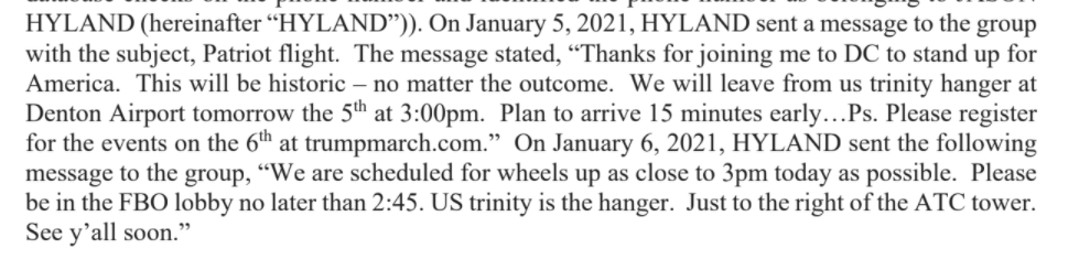 The FBI says Jason Hyland of Texas arranged the private jet that flew real-estate agent Jenna Ryan & others to the Capitol riot.