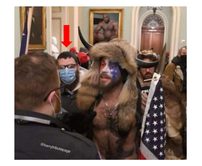 Now: DOJ responds, glancingly, to the uproar over the Jacob Chansley footage, clarifying that the images of him w/the police took place *after* he illegally entered the Senate gallery--the behavior that triggered his obstruction of Congress charge.