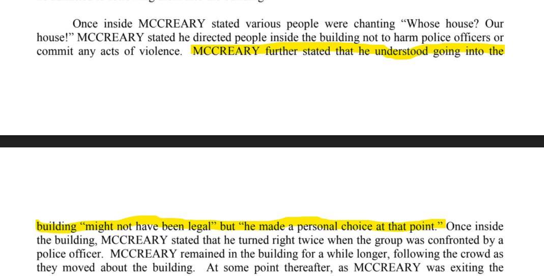 McCreary later told agents that he knew going into the Capitol "might not have been legal," but that he "made a personal choice."