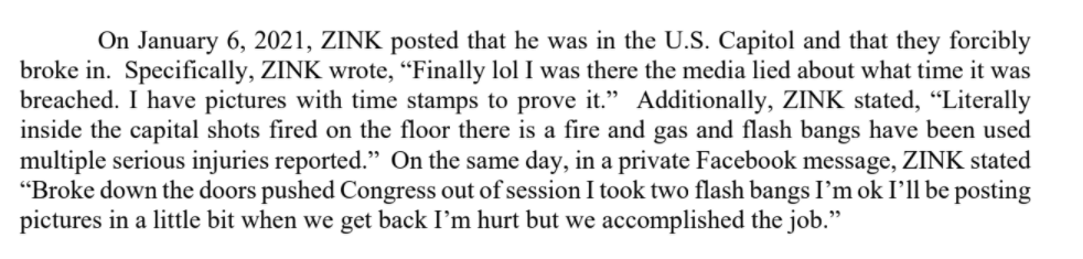 "Lol I was there," Ryan Zink wrote on Facebook, helping the FBI bring charges against him. "The media lied about what time it was breached. I have pictures with time stamps to prove it.”