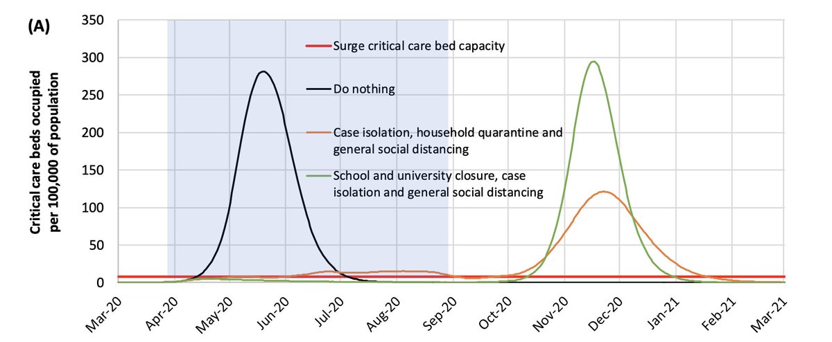 Eles propõem uma contenção por 5 meses e avaliam a reabertura, vejam a nova onda no inverno (linha laranja).