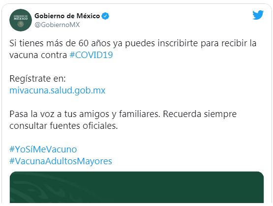Durante la mañanera de ese día el subsecretario se salud indico que este registro es para personas adultas mayores de 60 años, el cual se realiza a través de la plataforma “Mi Vacuna del Gobierno Federal”