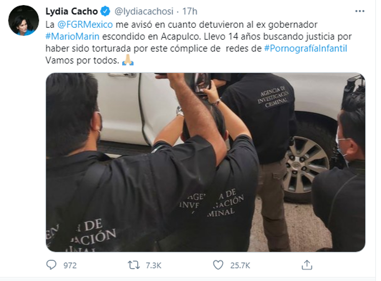 mexicana no fue el adecuado y que el gobierno mexicano debería castigar a los responsables adecuadamente. En abril de 2019 se emitió la orden de aprensión en contra del ex gobernador Mario Marín, el empresario Kamel Nacif y el exdirector de la Policía Judicial de Puebla Hugo B. +