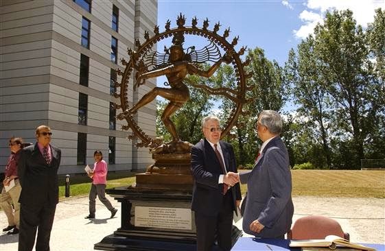 fue CUÁL PODÍA SER LA RELACIÓN ENTRE UN COLISIONADOR DE HADRONES "TECNOLÓGICO Y CIENTÍFICO" Y UNA ESTATUA DEL DIOS SHIVA, "EL DESTRUCTOR", COMPLETAMENTE MÍSTICO Y MITOLÓGICO.