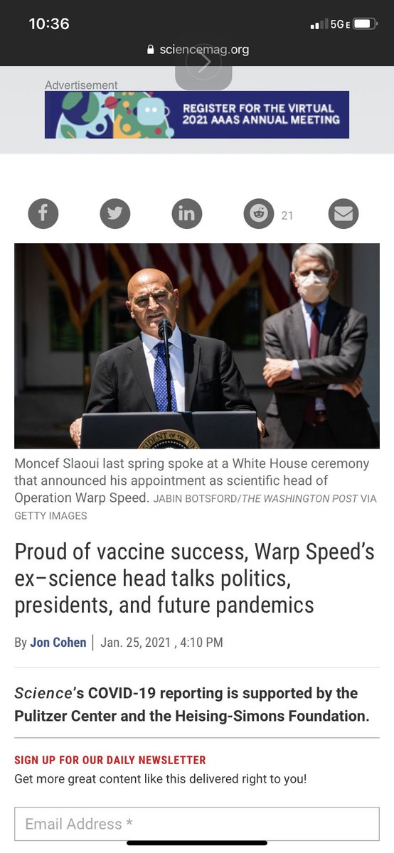 Speed;[3] Slaoui resigned on January 12, 2021.