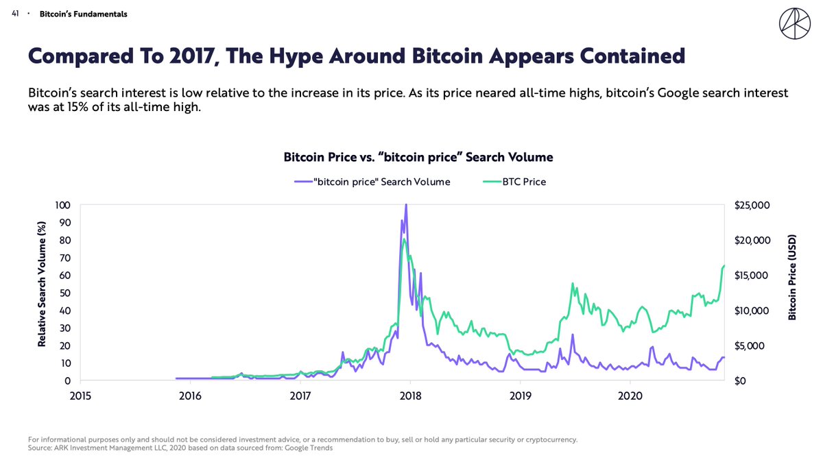 4/n Chart suggest hype isn't as big this time based on Google. Maybe - but those who Googled in 2017 don';t need to do it again. Also - check out second chart (not from @ark) on weekly crypto subreddit subscribers. Seems plenty bubbly from that perspective. Also worth noting