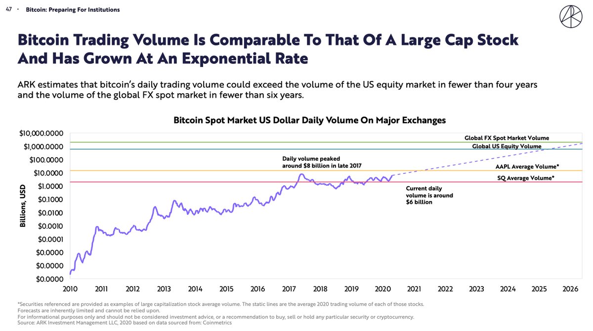 this chart - which shows volume of #BTC traded over time - doesn't look like it hit $1bn in daily turnover until 2016/2017 (happy to be corrected), and market cap was tiny. Ergo - all of the correlation data prior to that is probably meaningless for insto investors
