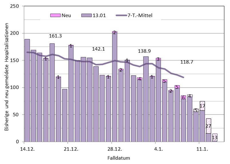Spitaleintritte abnehm., Hospitalisationsrate leicht abnehm., es ist mit Nachm. zu rechnen