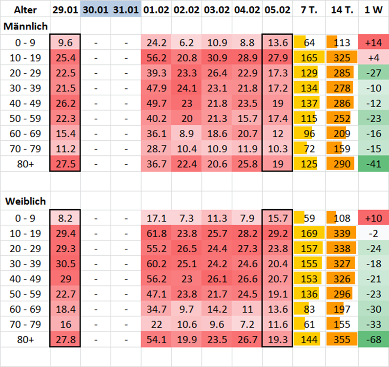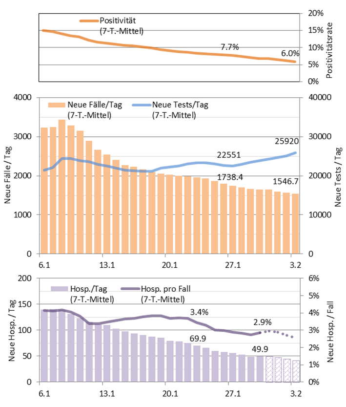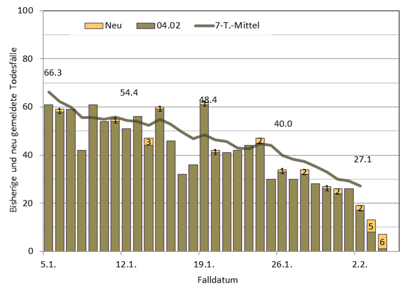 Epidemiologische Kurve der letzten 4 Wochen (bis 3.2./30.1.):