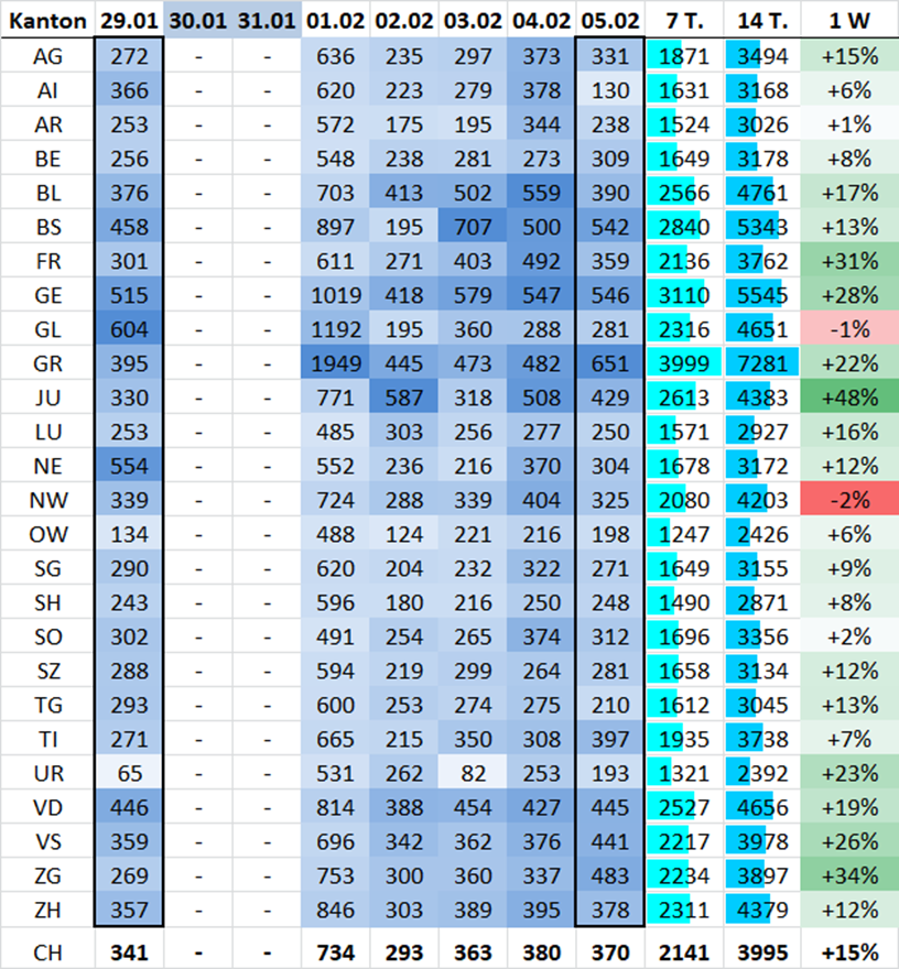 - 3'760 aktuelle Fälle Mo-Mo
