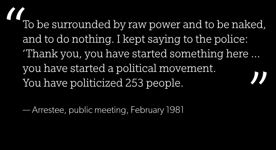 “Something very horrible has happened in this city, which I think is not just a gay issue, but a human rights issue” an arrestee told a public meeting organized in the aftermath of the raids.
