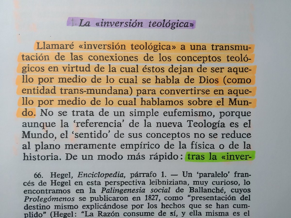 Así, si en la teología natural clásica de la Escolástica, por la via remotionis, se partía de los contenidos mundanos (Mi) para en regressus determinar la existencia y la naturaleza de Dios como entidad transmundana (M), la inversión teológica es "inversión" porque invierte