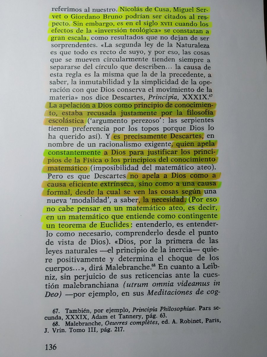 de regresar hasta Dios y no al contrario, puede apreciarse que Descartes, Malebranche o Leibniz comienzan a apelar a Dios (ya dado) como principio del propio conocimiento mundano.