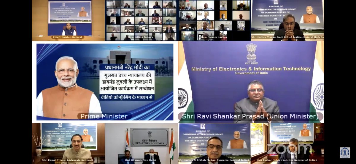 PM Narendra Modi releases a stamp commemorating the Diamond Jubilee of the Gujarat High Court