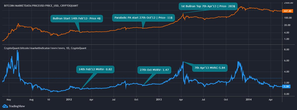 2013 Bullrun began around 14th Feb’2012 when price dipped to 4$. MVRV ratio back then was 0.8. 2021 bullrun began around 10th March’2020, with a dip to 4K$. The MVRV ratio was 0.7, very close to that in 2013 #BTC#Bitcoin