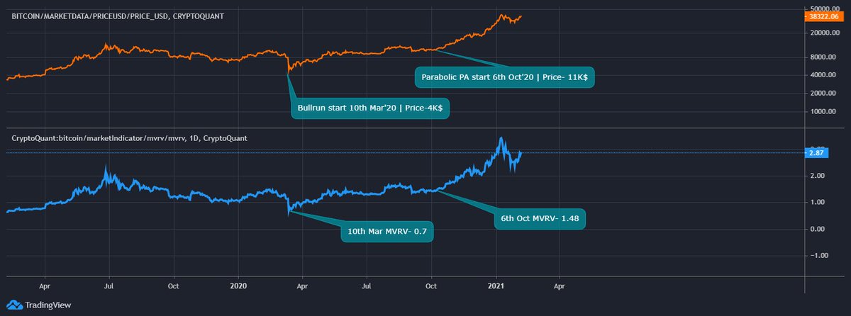 10/ 2013 parabolic run started around 27th October’2013. Price was 11$ and MVRV ratio was 1.47. 2021 parabolic run started around 6th Oct’ 2020. Price was 11K$ & MVRV was 1.48. Do you see the pattern now?