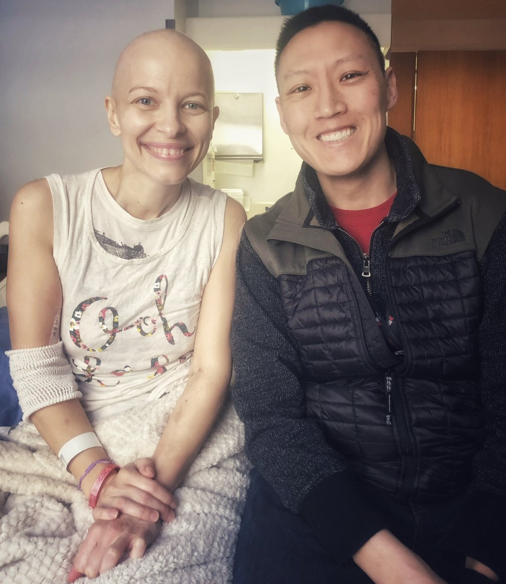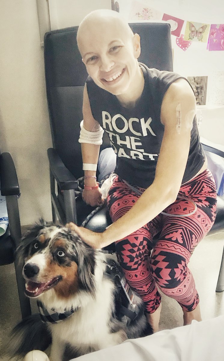 But these photos show the other side of things. My cousin and siblings travelled to be here with me. The hospital staff cheered me on as I took my first slow steps post-surgery. I got to pet the support doggos. That's @giselledenis giving my bald head a little smooch. 😂❤️ 10/