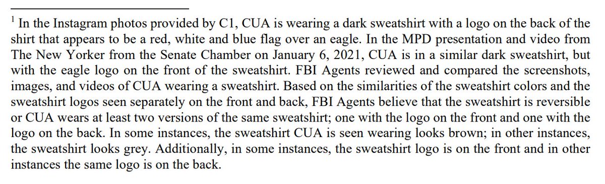 "CUA is seen outside the Senate Chamber doors, in a physical altercation with USCP plain clothes officers, still holding a baton in his hand. Specifically, CUA can be seen shoving USCP Officer G.L. (“G.L.”) in front of the door to the Senate Chambers…."