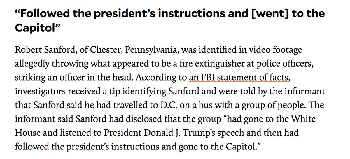 An informant told investigators that Robert Sanford, of Chester, Pennsylvania, was among a group that “had gone to the White House and listened to President Donald J. Trump’s speech and then had followed the president’s instructions and gone to the Capitol.”