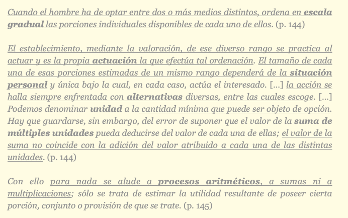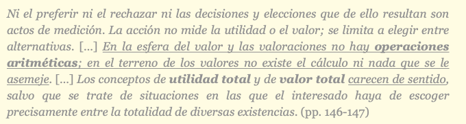-Ludwig von Mises: "La acción humana. Tratado de economía". Teoría del valor económico (en el capítulo VII primer apartado, primera parte)-