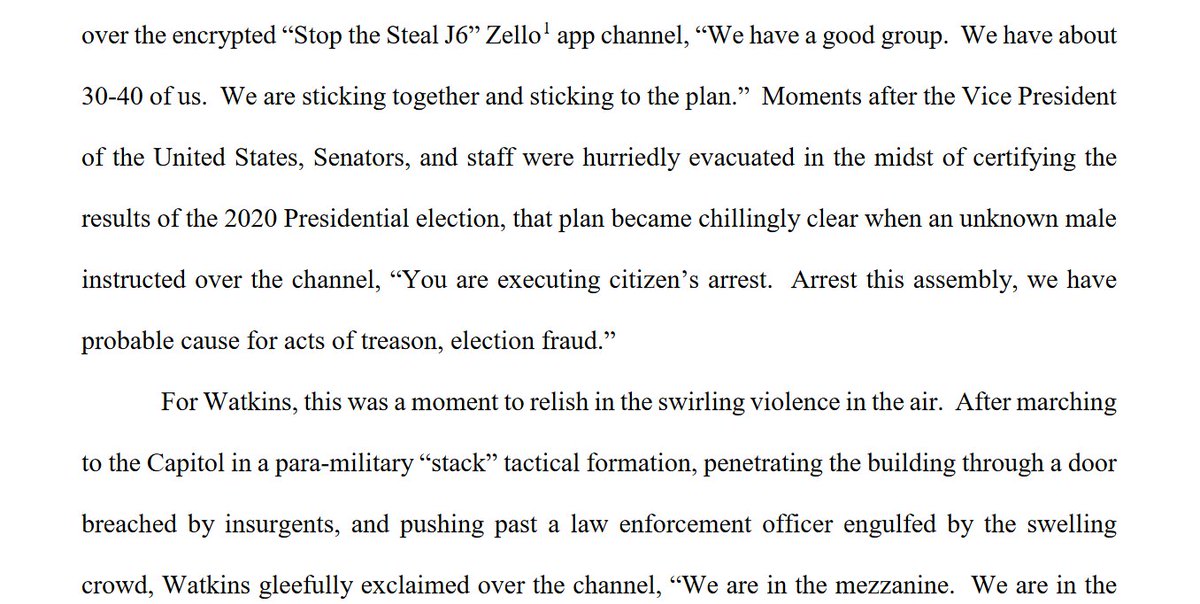 Prosecutors say in a new filing that Oath Keeper Jessica Watkins showed up at the Capitol w/30-40 others ready to execute citizen arrests.