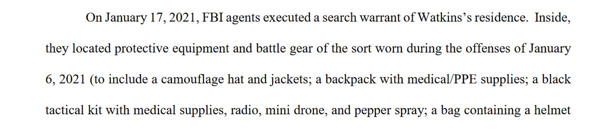 When the FBI raided Watkins' home in Ohio, agents found numerous firearms, a paintball gun with rubber-steel balls and a cylinder, pool cues cut down to baton size, zip/cable ties and a recipe for making "a destructive device."