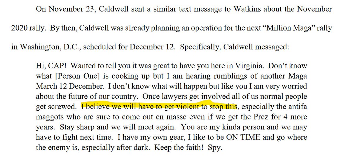 It's now clear the FBI has extensive text messages shared by Caldwell & his two Oath Keeper co-defendants, jessica Watkins & Donovan Crowl.