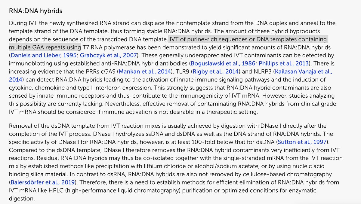 This paper demonstrates why the regulators cant find the DNA. The nucleases being used to remove the DNA, fail to digest the RNA:DNA hybrids. So they remove the KAN gene, fail to remove the Spike gene and only go looking for the KAN gene. This is why fluorometry sees ~100X more than qPCR.