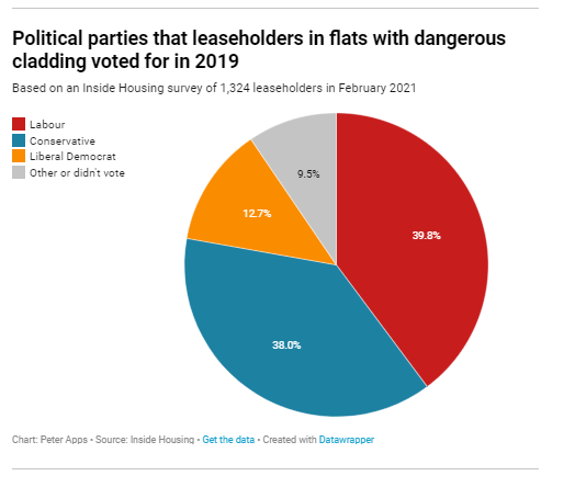 And here's a potential clincher in Westminster (sadly): the party political affiliation is pretty even. Almost exactly the same number of Tory and Labour voters in the 2019 election impacted. But 82.7% say the cladding crisis will influence who they vote for next time