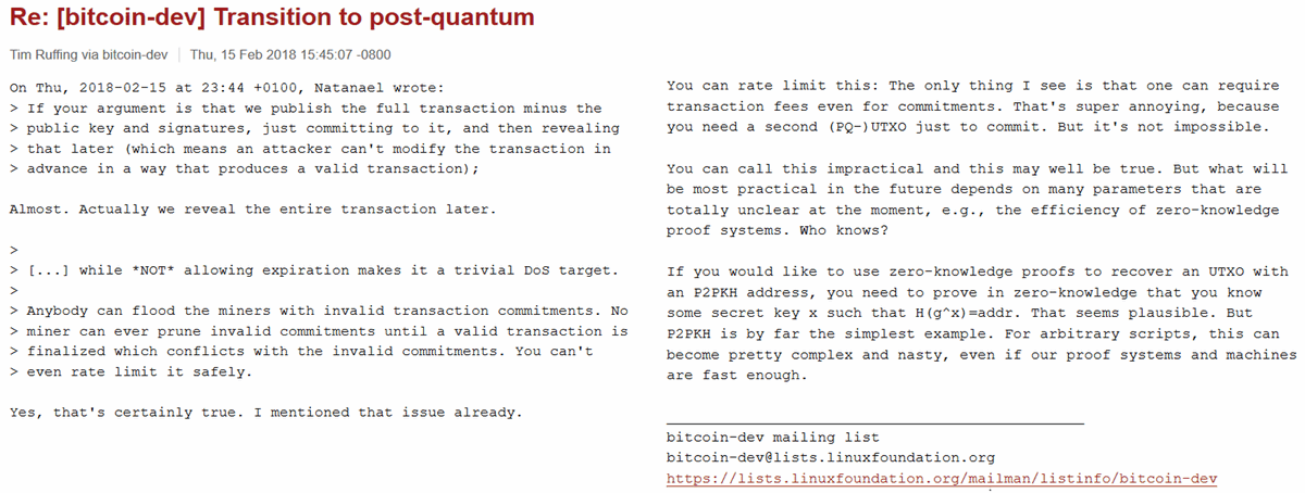 One potential way around the network overhead & just plain hassle of commit-reveal migration would be if a highly efficient quantum-resistant zero-knowledge proof were discovered. Current QR ZK algos are far too large to use in Bitcoin, but that could change. Worth noting. 16/