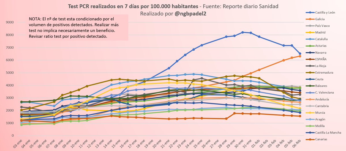 - Evolución del número de test realizados por cada 100.000 habitantes