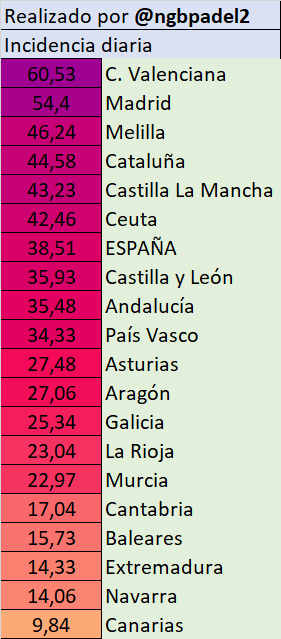 ▪️ C. Valenciana con 60 en cabeza pero en números de nuevos positivos inferiores a lo visto durante varias semanas. Madrid es la otra CCAA que sube de 50.