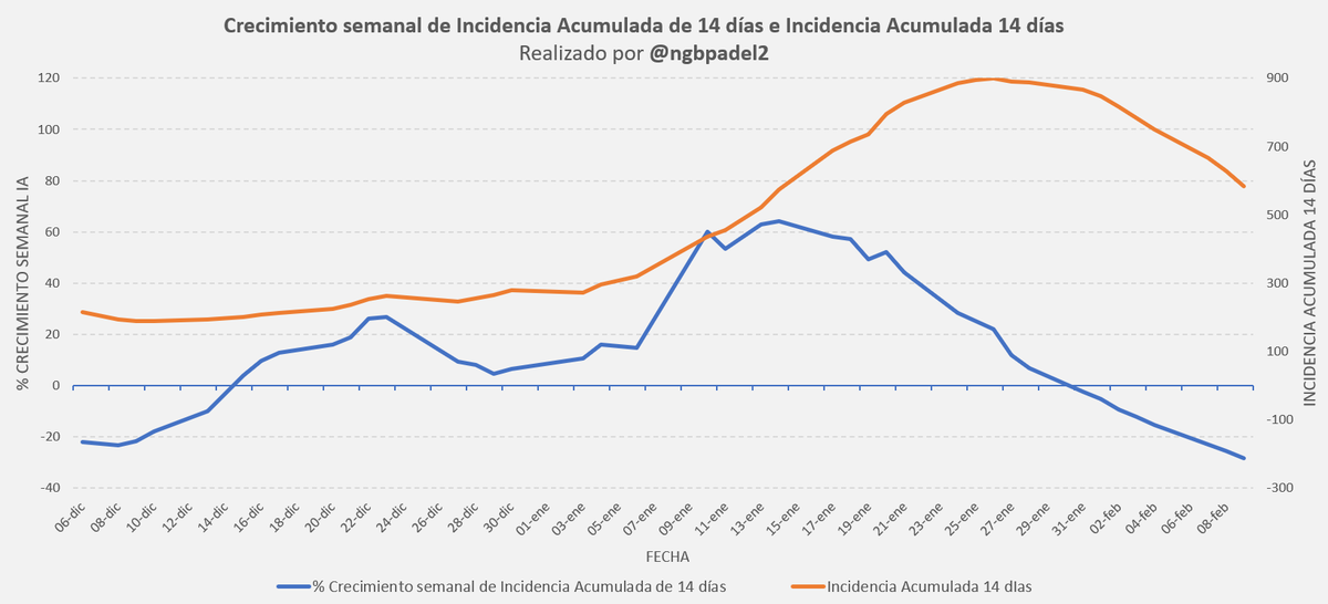 Visión integrada de la incidencia acumulada en 14 días y los % de crecimiento semanal.