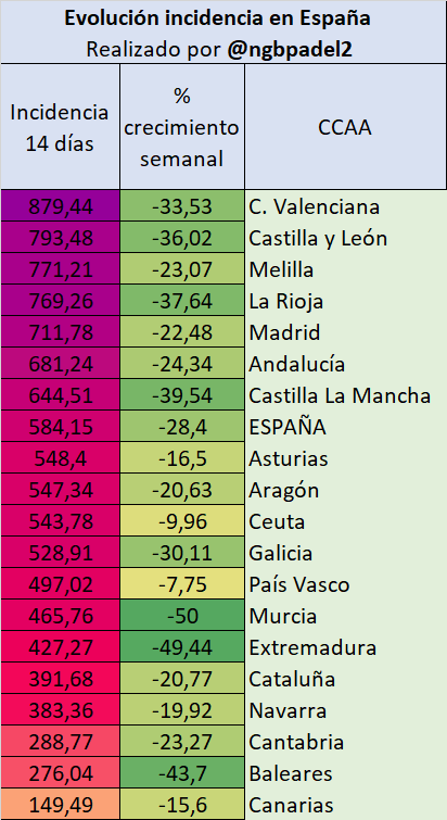 ▪️ Todas las CCAA en descenso semanal actualmente.