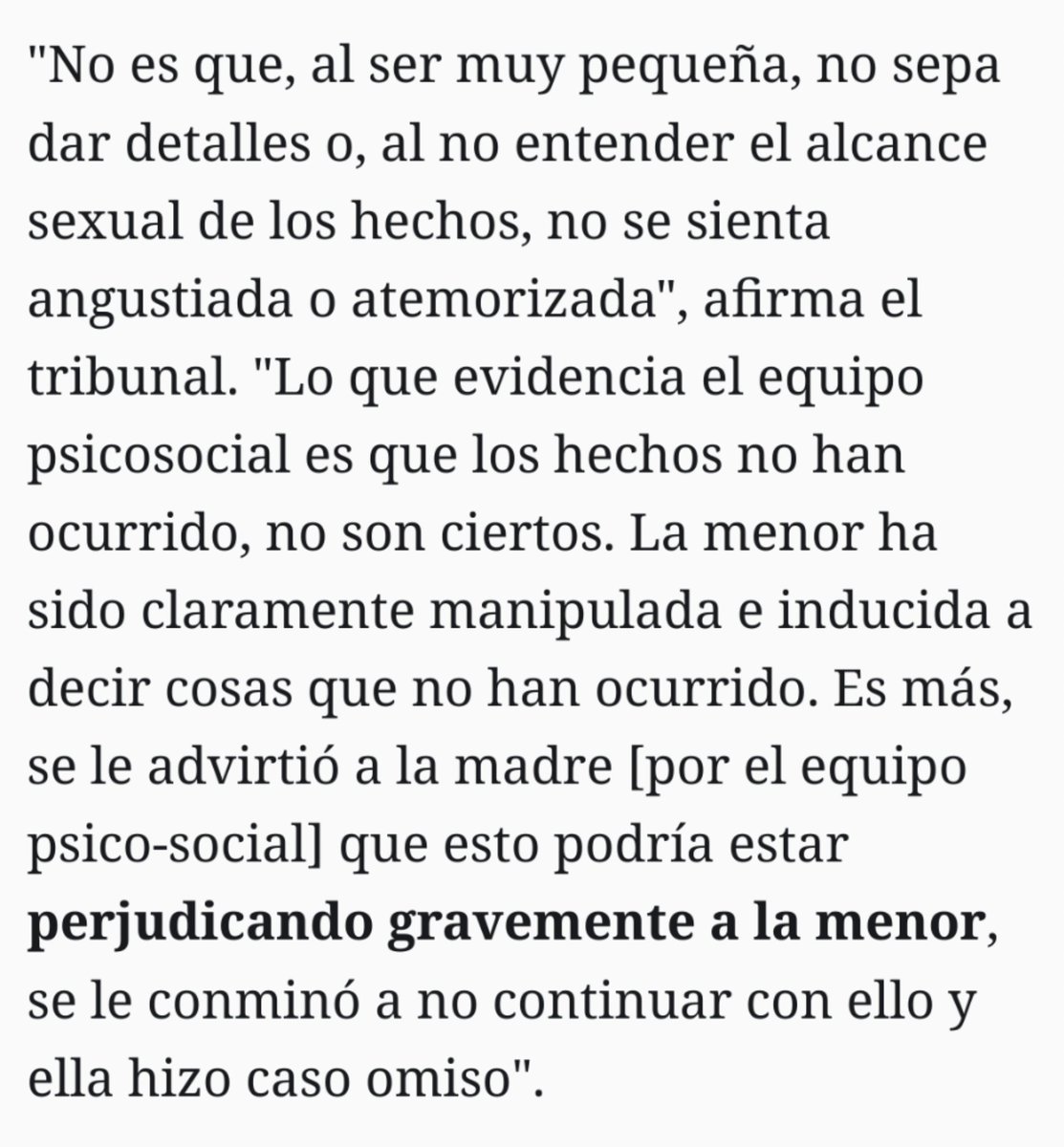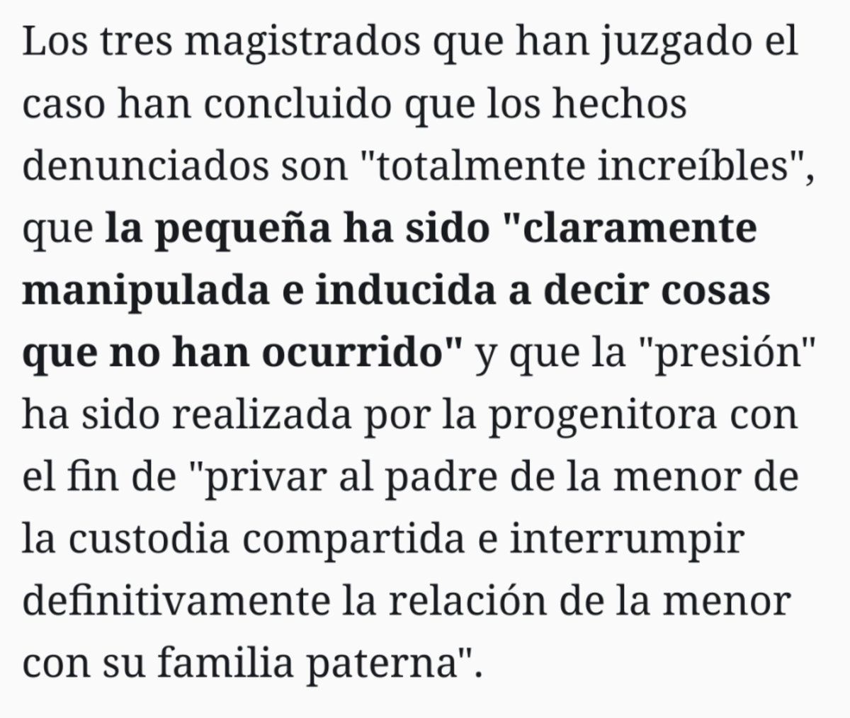 Aquí, @ionebelarra repite de nuevo que los jueces tendrán prohibido decir que el rechazo de un menor hacia el padre se debe a una manipulación de la madre.