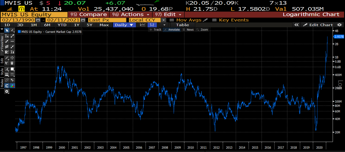 $MVIS at $3 bil is the single most absurd pricing in public markets that I have ever seen. This is a nearly-worthless trading sardine, detached from any actual underlying business. [thread]