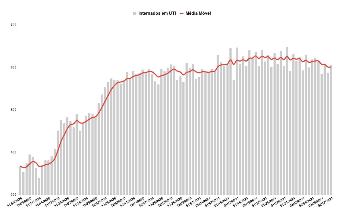 Nos leitos municipais do boletim da prefeitura a situação é a mesma, começou a cair, mas ainda em níveis muito altos, acima de todo o segundo semestre do ano passado.