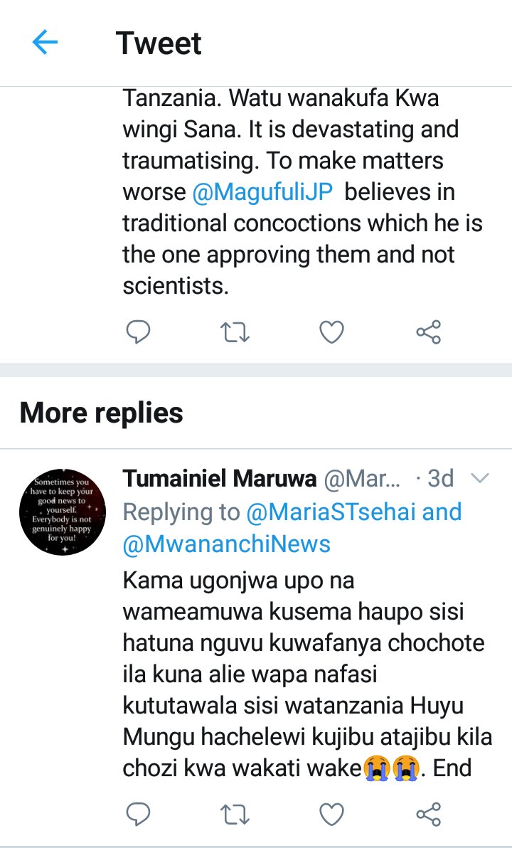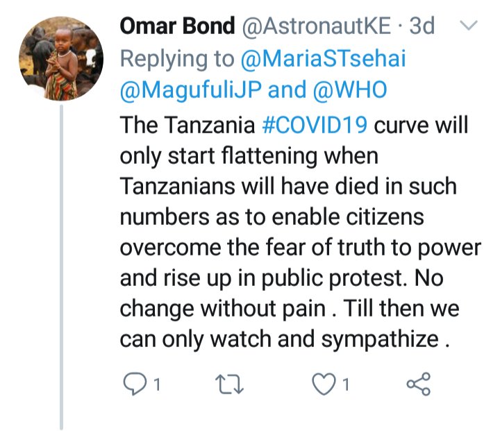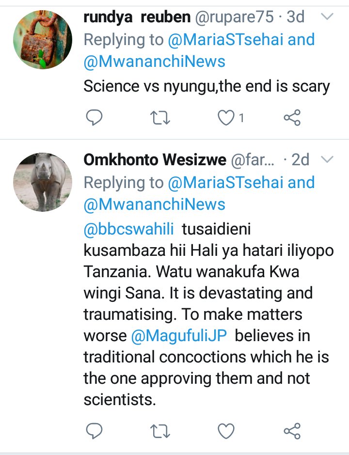 THREAD. Don't emulate that which you don't know! What does Pombe stand to lose by accepting there's #COVID19 in TZ? Worse still they're being discouraged from taking proper precautions. Tanzanians are finally talking. They're saying COVID-19 is real and present in their country.