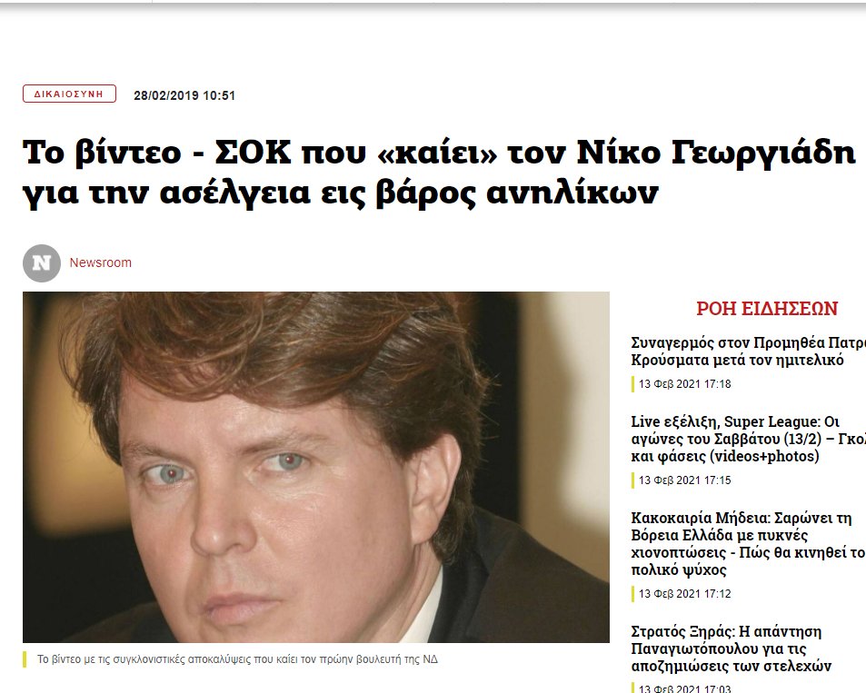 2.Νικος Γεωργιαδης,συμβουλος του Μητσοτακη που μετα την αποκαλυψη,του ειπε οπως ο ιδιος ανεφερε να κατσει στην ακρη μεχρι να ξεχαστει.Πρωτοδικα εφαγε 28 μηνες,μεχρι το εφετειο η υποθεση παραγραφηκε.ΔΕΝ ΑΘΩΩΘΗΚΕ.ο ιδιος και σημερα βρισκεται διπλα στον Μητσοτακη στο Μαξιμου.Δεν