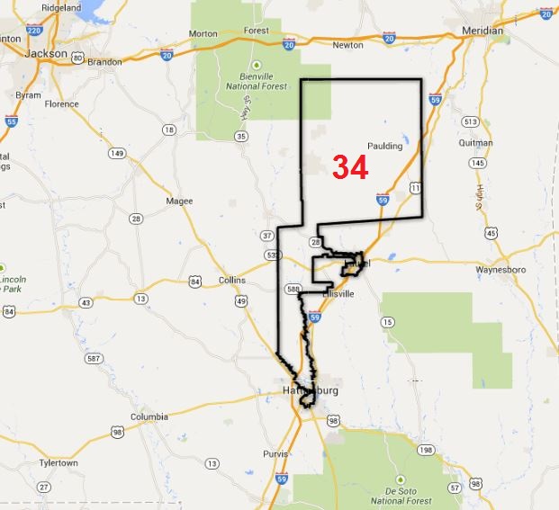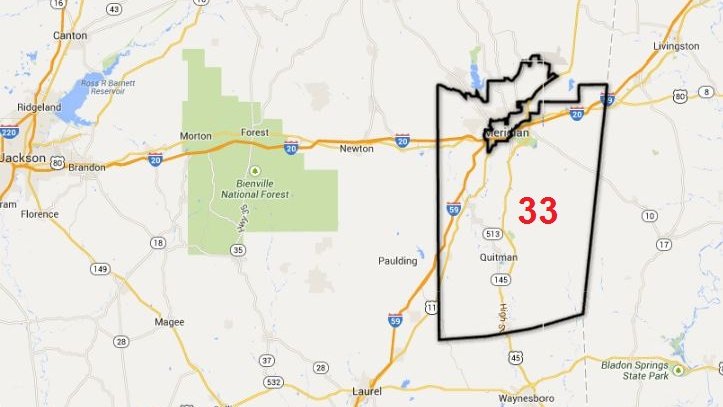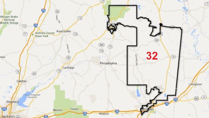 Portions of Louisville and Meridian are carved out of 18 and 33, respectively, and into 32, represented by Sampson Jackson, a black Democrat.