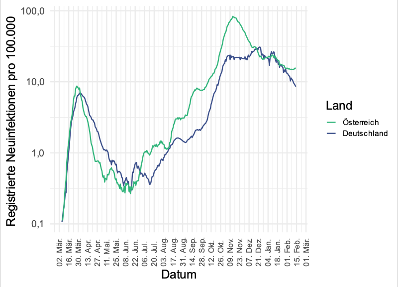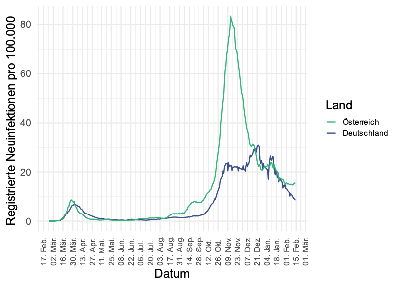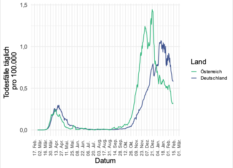 Ich verwende bei den internationalen Vergleichen für Österreich Daten aus einer anderen Quelle als bei den nationalen Darstellungen. Deswegen kann es zu etwas unterschiedlichen Werten kommen.