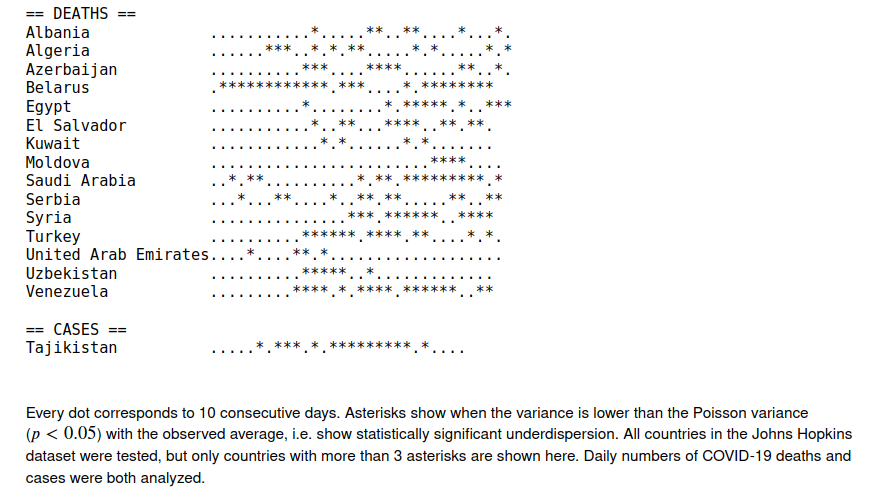 Updated my analysis quantifying underdispersion (relative to Poisson π) in daily reported Covid-19 cases and deaths. Countries listed below have likely been tampering with their data :-/