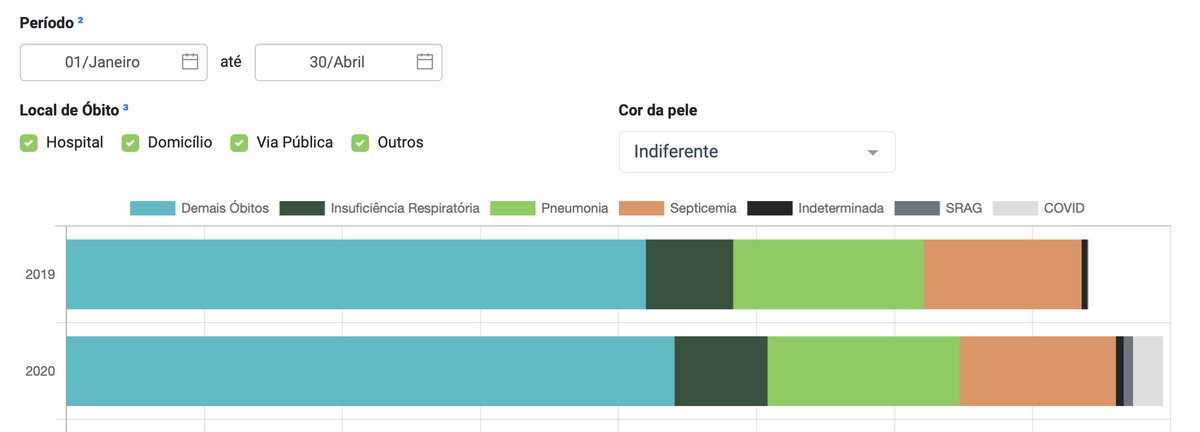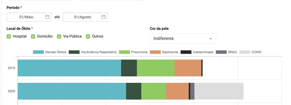 As pessoas apresentavam este tipo de gráfico do portal do registro civil dizendo que tirando COVID-19 o numero total de mortes era muito menor que em anos anterior e outras mortes estavam entrando na conta como COVID19